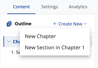 Add additional Chapters using Create New in the outline panel.
