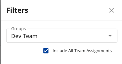 Note: When selecting a subset of groups or viewing the dashboard from within a group, you have the option to include any assignments at the All Team level as well as group-specific assignments.