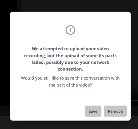 If your network briefly drops, becomes unstable, or blocks part of the connection at any point during the role play, one or more segments may fail to upload successfully. When the session completes, the system attempts to reassemble those segments. If some parts are missing, you’ll see this message.